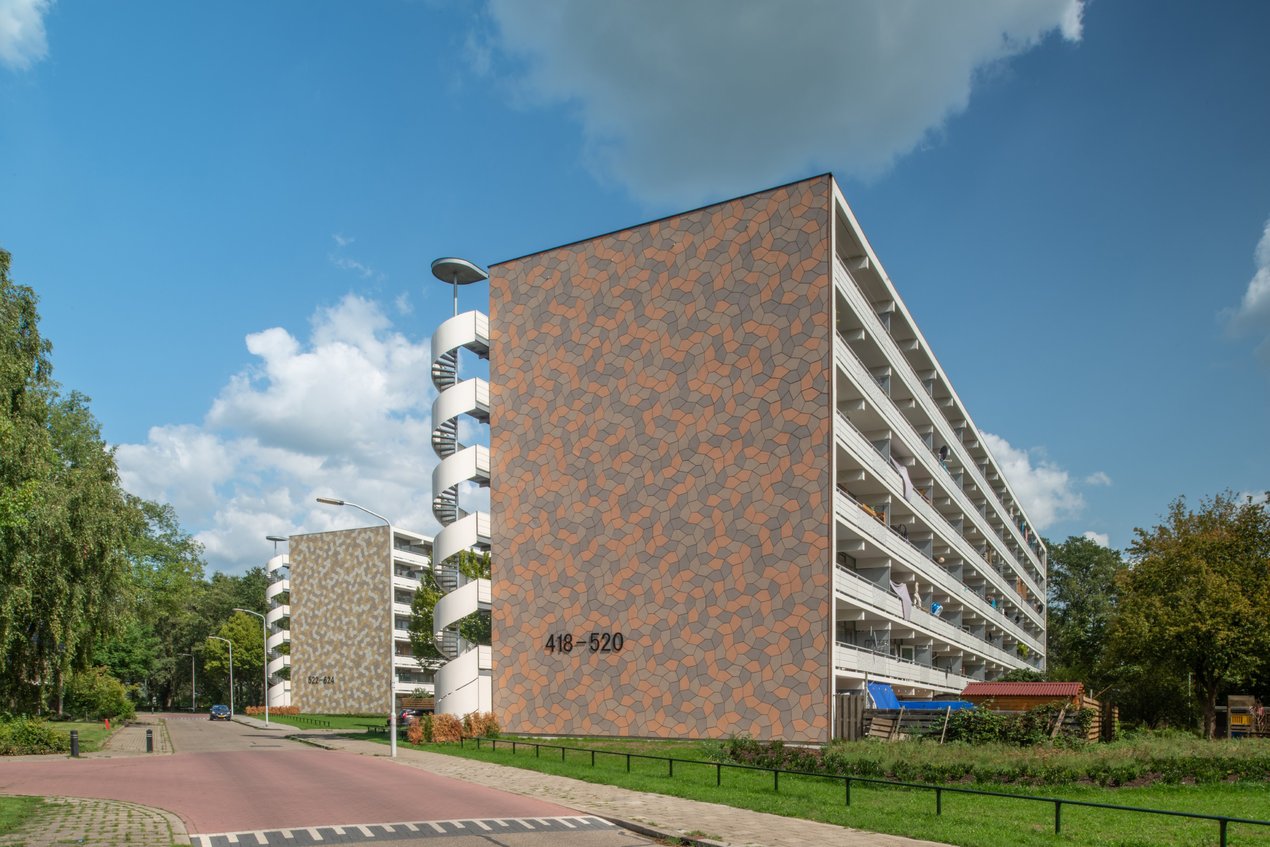 Zes flats aan de Caenstraat met zo'n 342 woningen zijn van binnen opgeknapt en ook de buitenkant verbeterd. De kopgevels van de flats zijn op een bijzondere manier bekleed. De gevels zijn eerst goed geïsoleerd en vervolgens zijn er vijfhoekige vormen (Ecoshapes) op verwerkt. De vormen komen terug bij de entree, maar ook bij de balustrades.