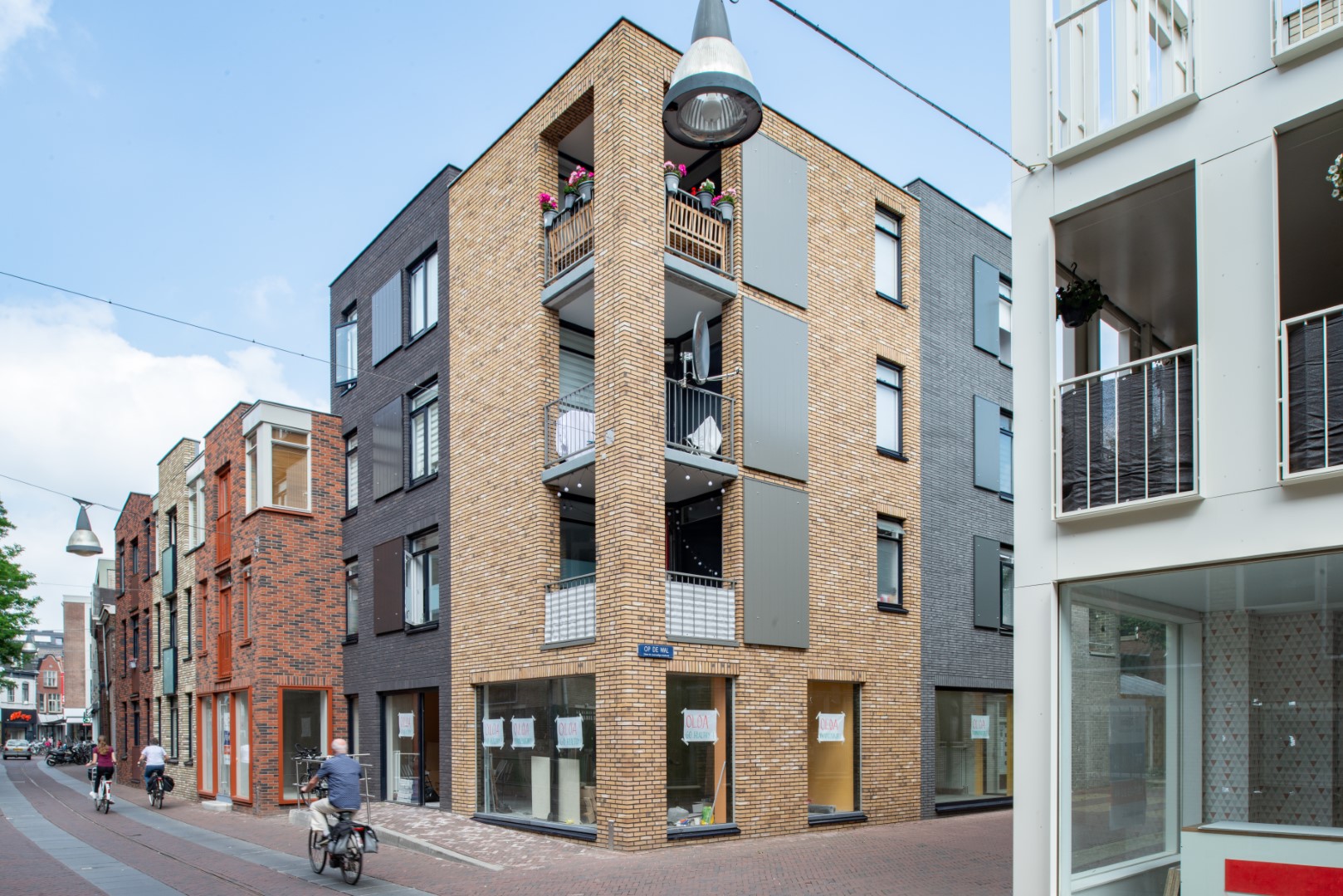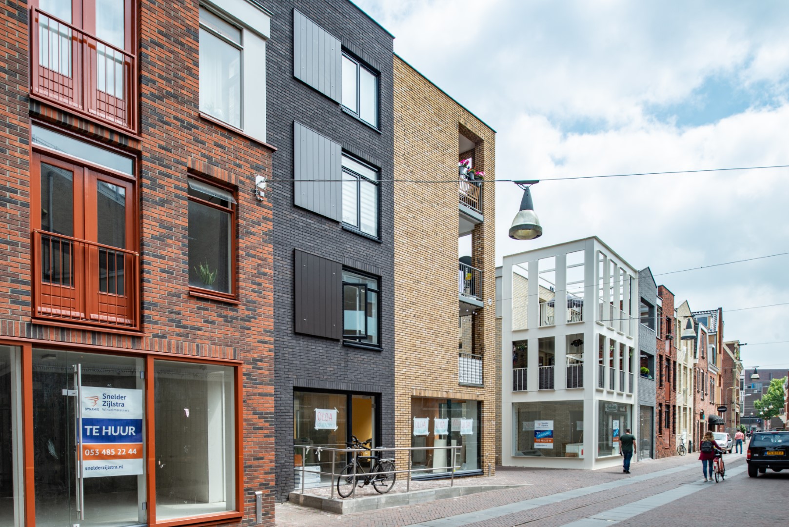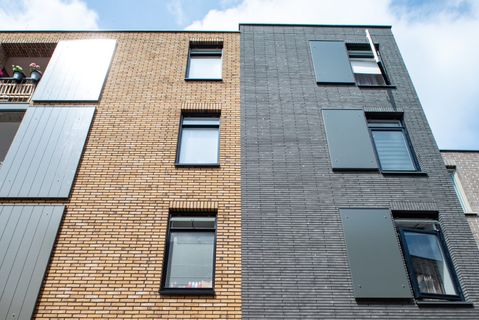 Soms voldoet een gevel aan de energetische eisen, maar past het niet in het straatbeeld. In de binnenstad van Enschede gaf woningcorporatie Domijn de gevel van het complex Op de wal daarom een facelift. Bewust is er gekozen om per woning de ‘stenen’ iets te laten verspringen.